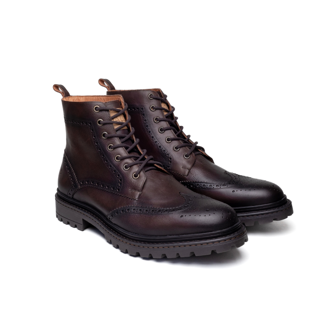 Bold and versatile, these lace-up brogue boots combine classic wingtip detailing with a rugged sole for modern durability. Designed for both elegance and strength, they offer all-day comfort and a timeless style that transitions seamlessly from casual to refined looks.