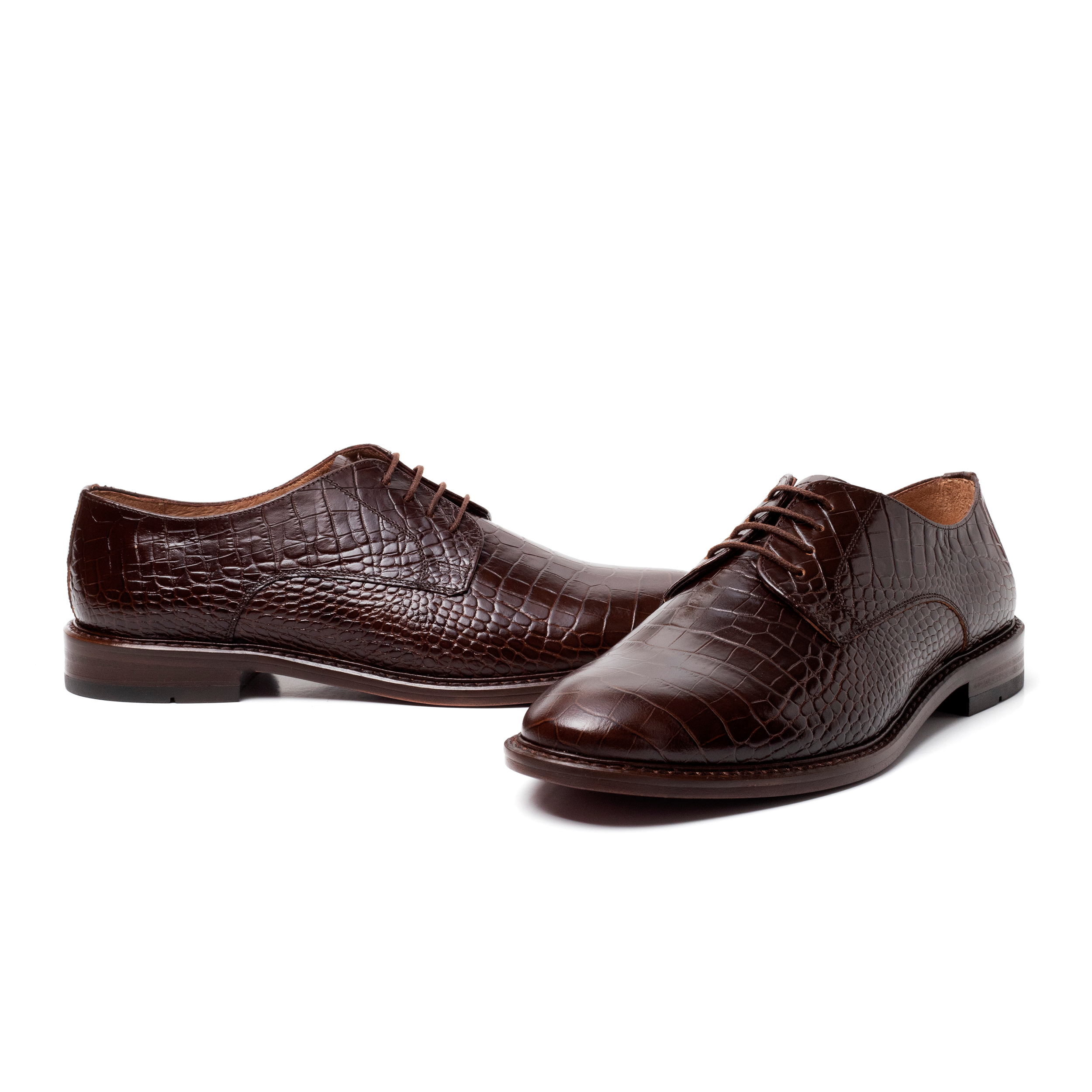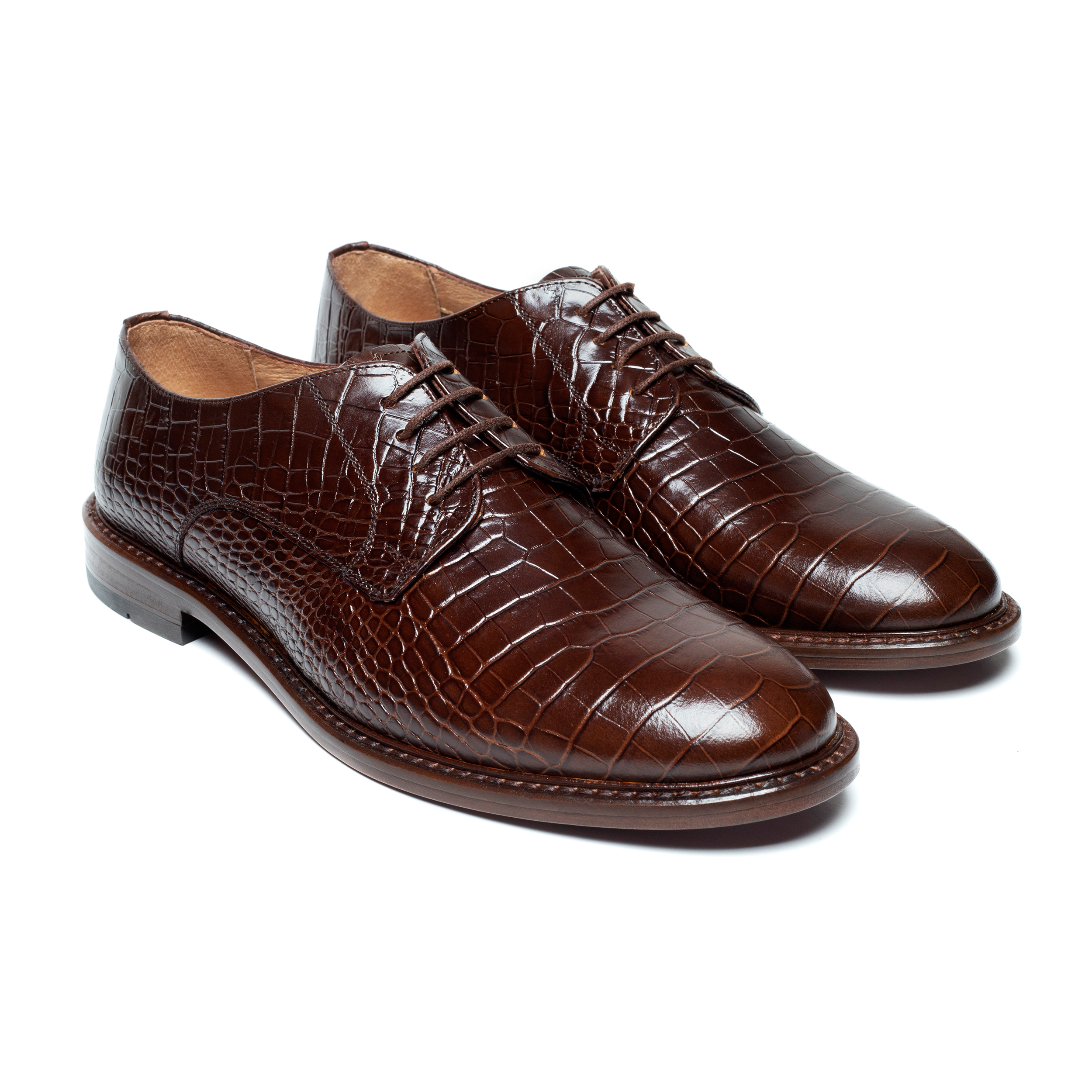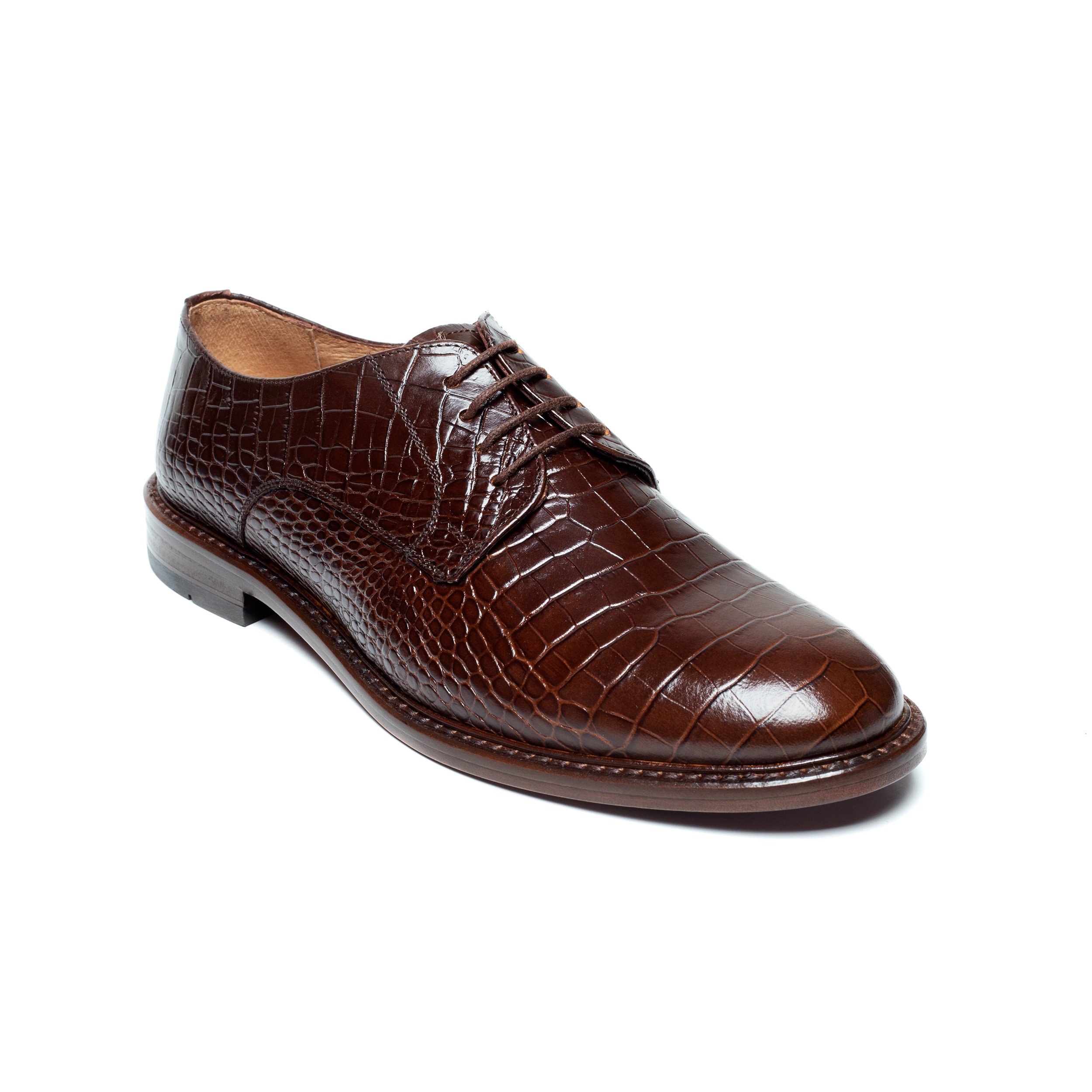 This women’s derby features a sleek slip-on design with a crocodile-embossed print, giving it a bold and sophisticated look. Its clean silhouette and slightly rounded toe make it versatile for both office wear and smart-casual outfits, while the textured finish adds a touch of luxury and modern style. Perfect for women who want a statement shoe that combines elegance with everyday functionality.