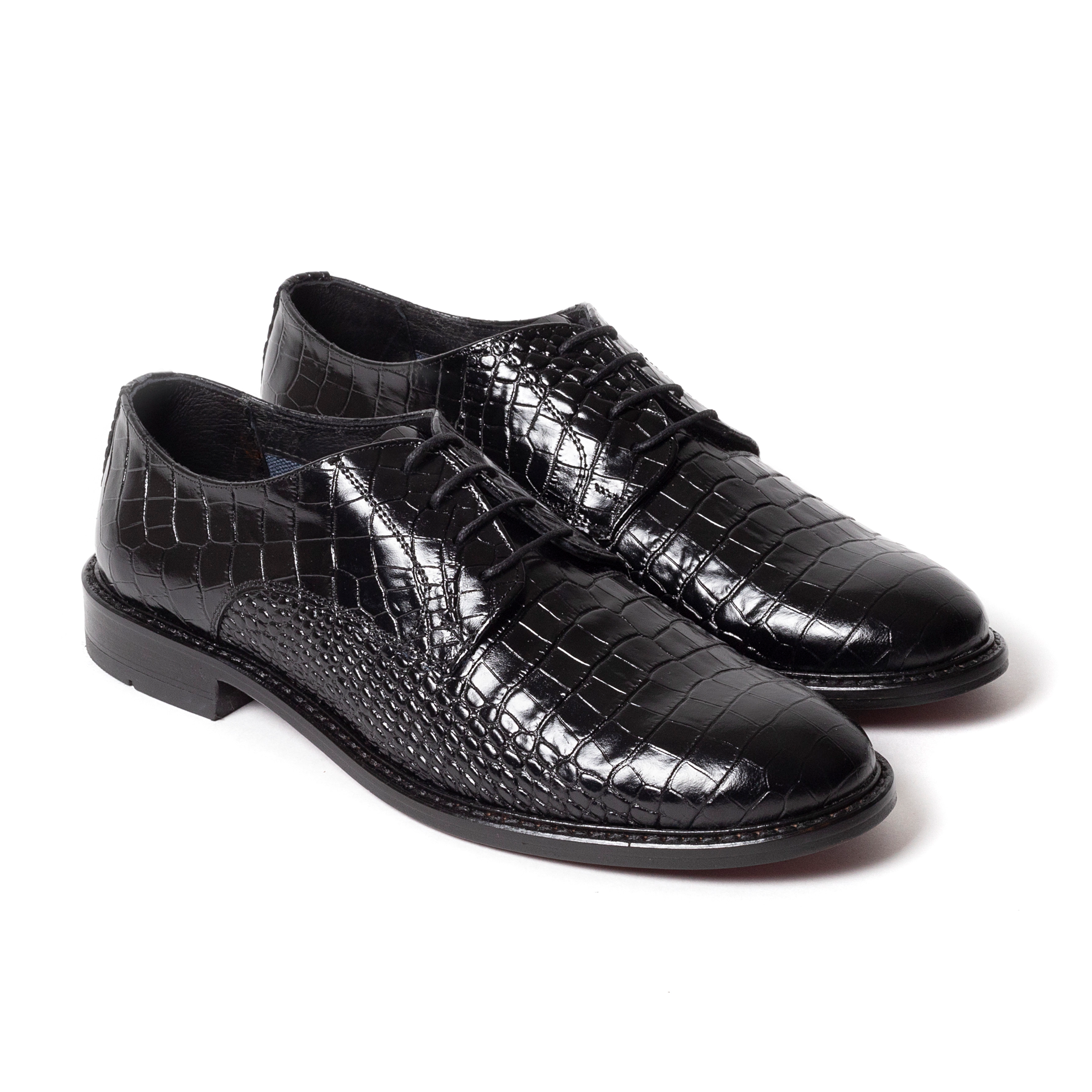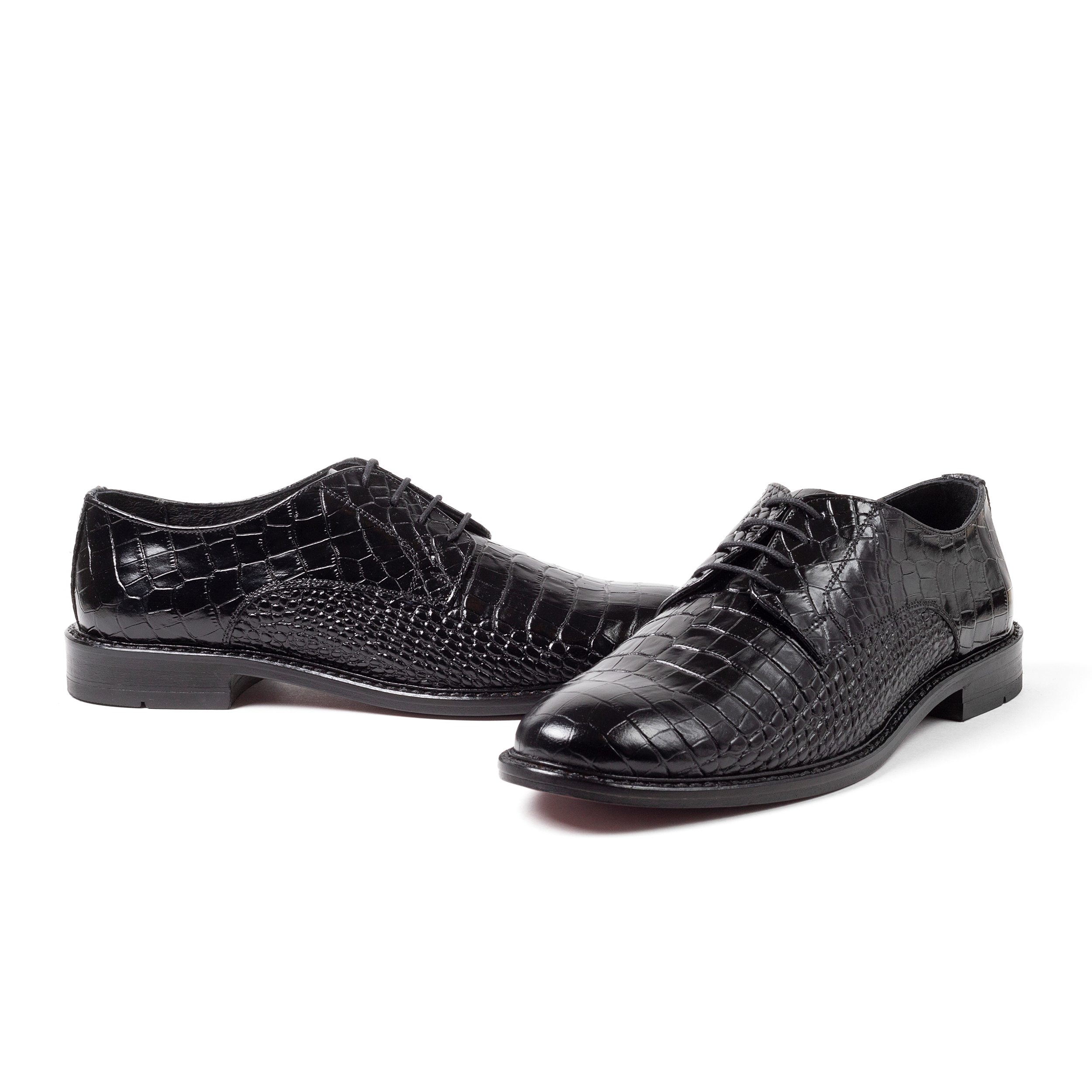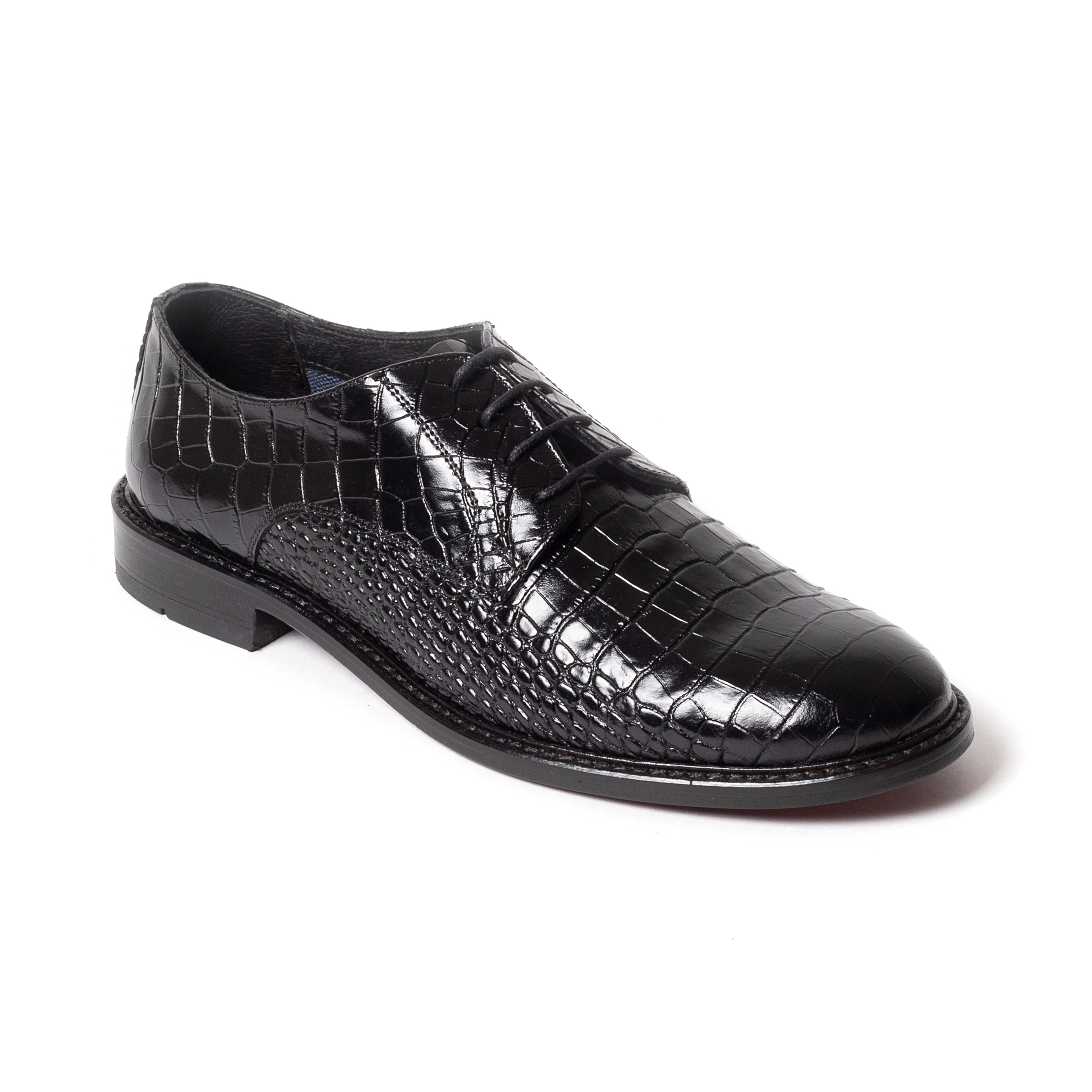 This women’s derby features a sleek slip-on design with a crocodile-embossed print, giving it a bold and sophisticated look. Its clean silhouette and slightly rounded toe make it versatile for both office wear and smart-casual outfits, while the textured finish adds a touch of luxury and modern style. Perfect for women who want a statement shoe that combines elegance with everyday functionality.