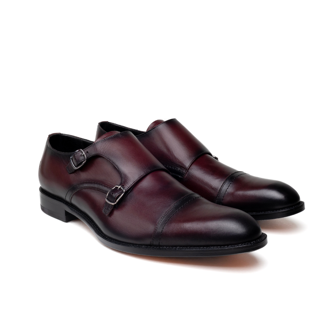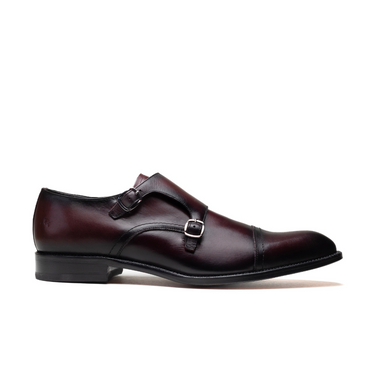 Expertly handcrafted from high-quality box calf leather, these shoes feature a deep burgundy finish with a sophisticated burnished toe for added character. The double buckle design offers a distinctive alternative to traditional lace-ups, combining modern style with classic heritage. Ideal for formal events or elevating your everyday office look, these monk straps deliver unmatched comfort, style, and durability.